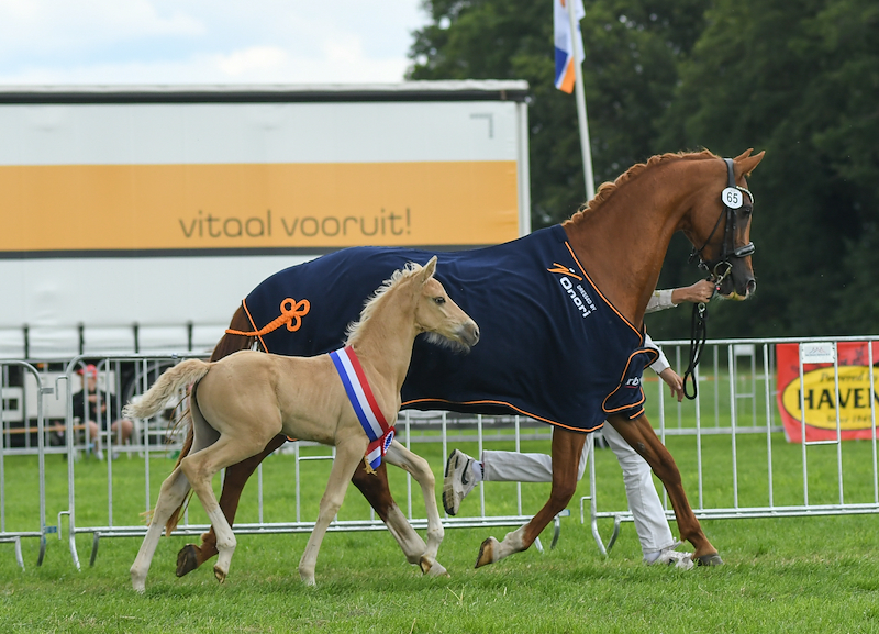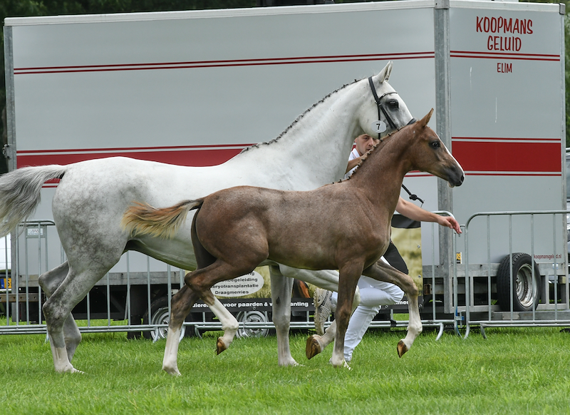 Na de springveulens verscheen er één Gelders veulen in de baan. Deze Une Rivière Pourpre LCT (v. Odin) had de fraaie palominokleur van zijn vader geërfd. Jury Luuk Smetsers zei over dit veulen: “Een ruim voldoende ontwikkeld veulen, met lengte in de hals, daarin zou hij even wat meer bespiering mogen hebben. Stappen deed hij ruim. Hij draafde elegant en in galop toonde hij ruimte en kracht.” Als moeder staat op papier Keplunora (v. Arlando) en hij is gefokt en staat geregistreerd bij L.C. van der Tas in Lunteren.